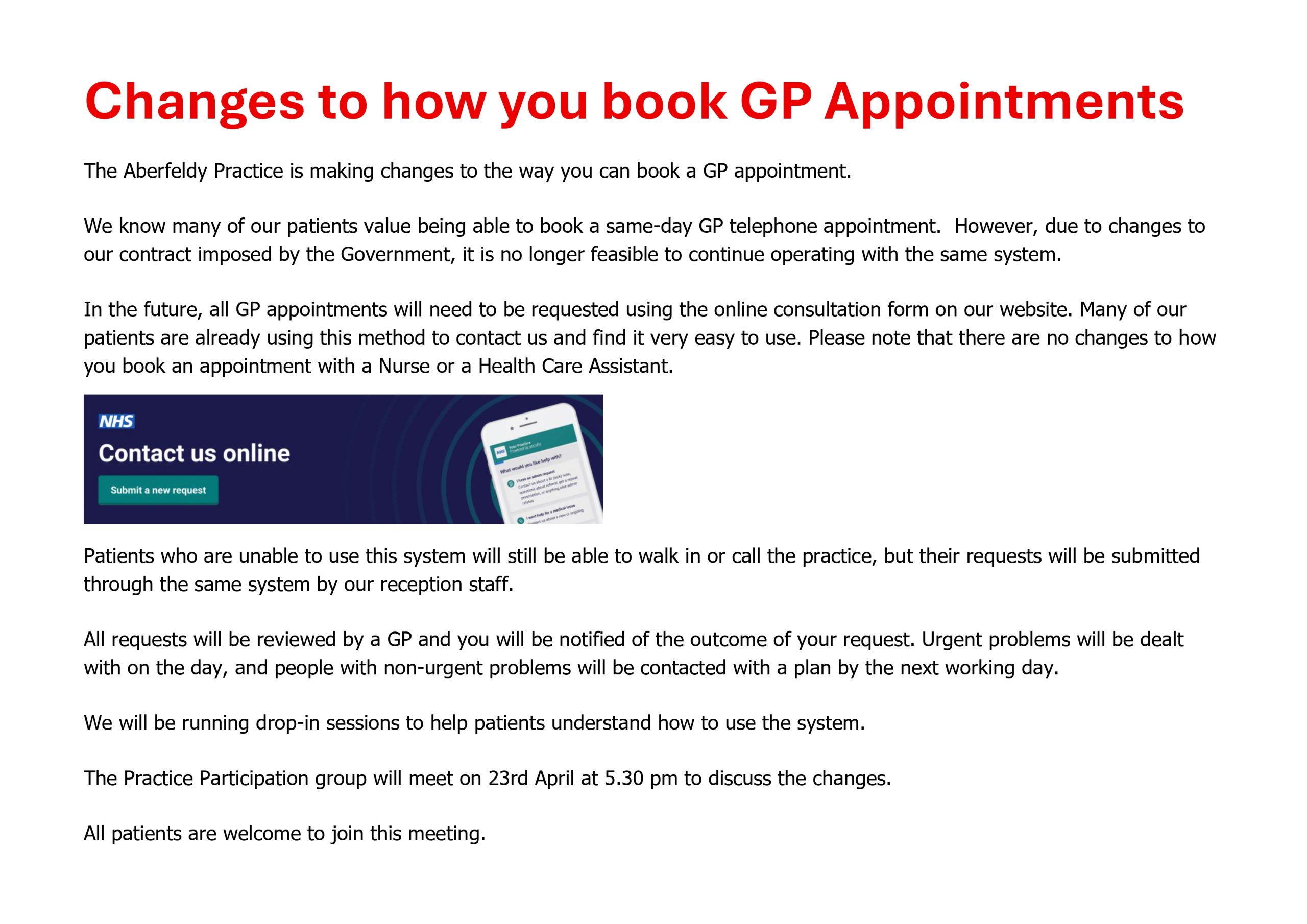 GP Surgery will remain open on Saturday 4th April 2026 for Enhanced Access Only (Hub Appointments)