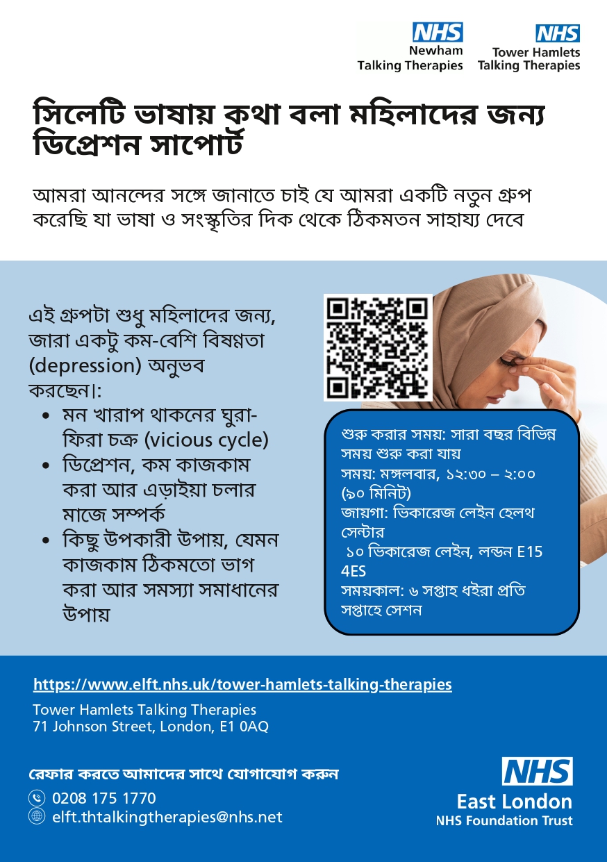 Bengali Depression group (women only), delivered in the Sylheti dialect – Tuesday 5th May 2026.