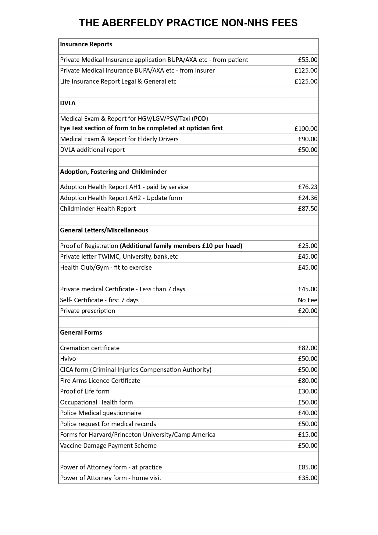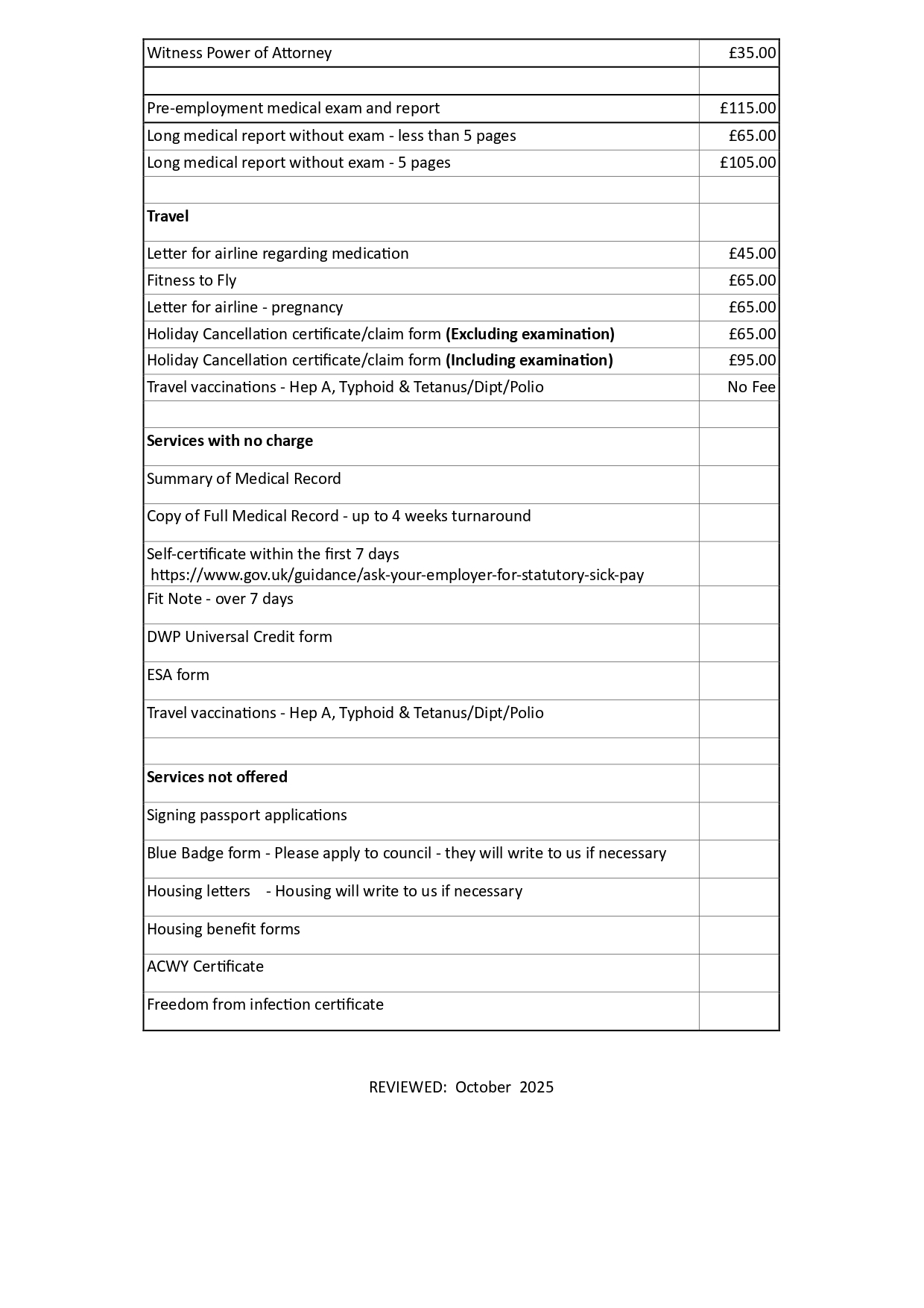 Please see below our list of Non NHS work that we offer at the practice, which attract a fee.